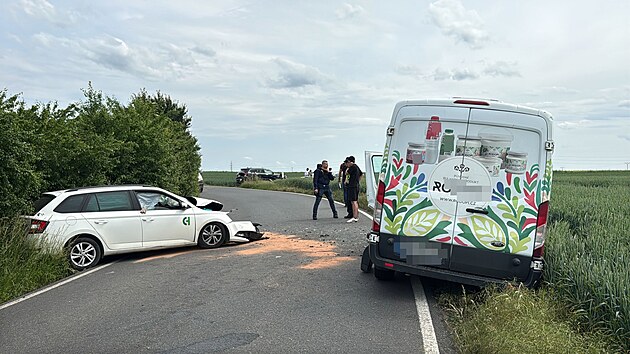U obce Libochovičky na Kladensku se střetlo osobní auto s dodávkou. (4. června 2025)