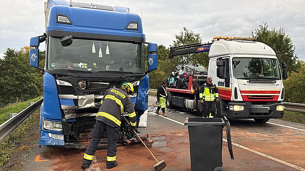 Tragická nehoda uzavřela silnici I/16 u Židněvsi. Řidič osobního vozu po střetu s kamionem na místě zemřel. (15. října 2025)