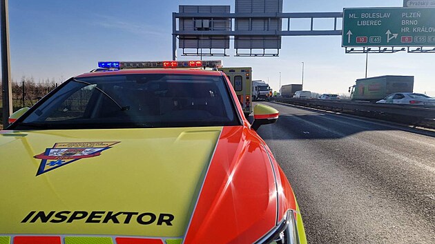 Na Vysočanské radiále se srazilo několik aut. (11. února 2025)