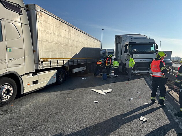 Na Vysočanské radiále se srazilo několik aut. (11. února 2025)