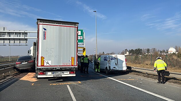 Na Vysočanské radiále se srazilo několik aut. (11. února 2025)