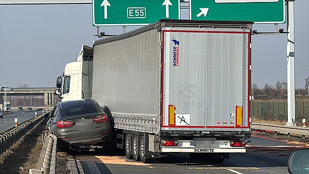 Na Vysočanské radiále se srazilo několik aut. (11. února 2025)