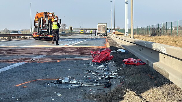 Na Vysočanské radiále se srazilo několik aut. (11. února 2025)