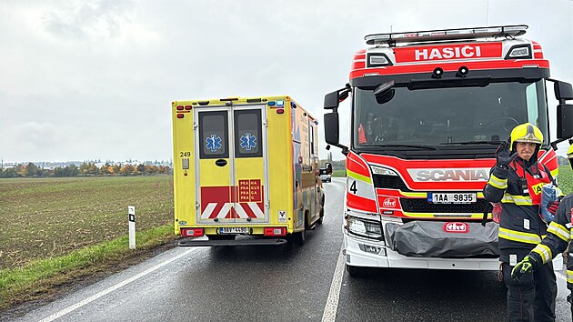 U Pitkovic se srazila dvě osobní auta. (22. října 2025)