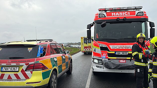 U Pitkovic se srazila dvě osobní auta. (22. října 2025)