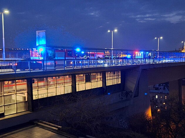 Osobní auto převrácené na střechu uzavřelo Nuselský most ve směru do centra Prahy. (24. ledna 2025)