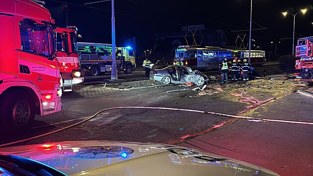 U Strašnic bourala dvě osobní vozidla s nákladním, na místě je pět zraněných. (21. prosince 2024)