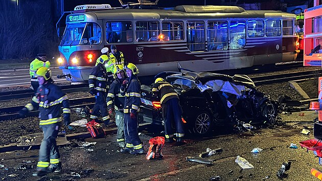 U Strašnic bourala dvě osobní vozidla s nákladním, na místě je pět zraněných. (21. prosince 2024)