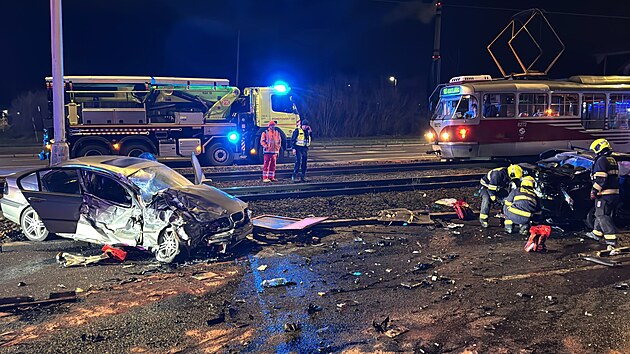 U Strašnic bourala dvě osobní vozidla s nákladním, na místě je pět zraněných. (21. prosince 2024)