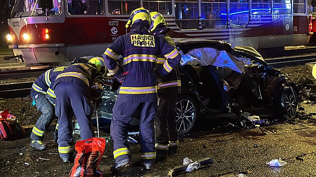 U Strašnic bourala dvě osobní vozidla s nákladním, na místě je pět zraněných. (21. prosince 2024)
