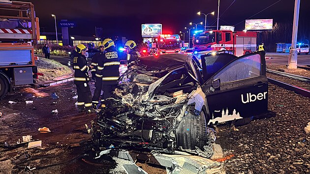 U Strašnic bourala dvě osobní vozidla s nákladním, na místě je pět zraněných. (21. prosince 2024)