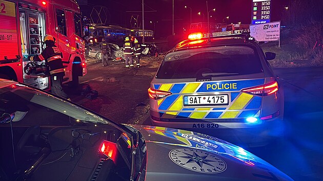 U Strašnic bourala dvě osobní vozidla s nákladním, na místě je pět zraněných. (21. prosince 2024)