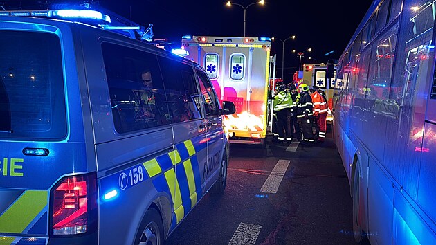 U Strašnic bourala dvě osobní vozidla s nákladním, na místě je pět zraněných. (21. prosince 2024)