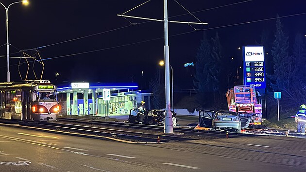 U Strašnic bourala dvě osobní vozidla s nákladním, na místě je pět zraněných. (21. prosince 2024)