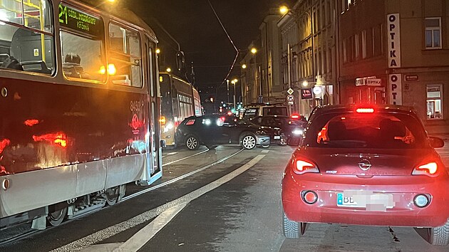 Srážka tramvaje s autem v ulici Radlická. (20. listopadu 2024)