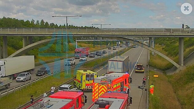 Na 7. km Pražského okruhu havarovala dvě nákladní auta, zemřeli dva lidé. (24. června 2025)