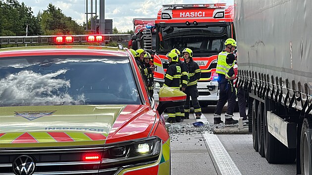 Na 7. km Pražského okruhu havarovala dvě nákladní auta, zemřeli dva lidé. (24. června 2025)