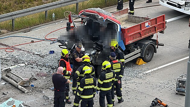 Na 7. km Pražského okruhu havarovala dvě nákladní auta, zemřeli dva lidé. (24. června 2025)