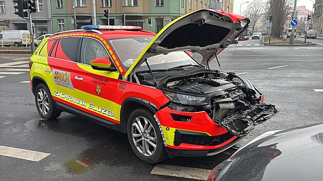 V Dejvicích se srazilo záchranářské auto s osobním autem. (24.2.2025)