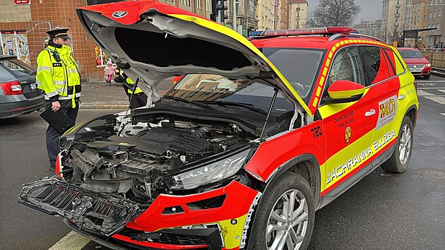 V Dejvicích se srazilo záchranářské auto s osobním autem. (24.2.2025)