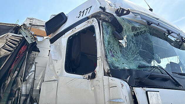 Před Prahou na dálnici D1 došlo k dopravní nehodě dvou kamionů, z jednoho vypadl náklad s pivem. (7. srpna 2025)