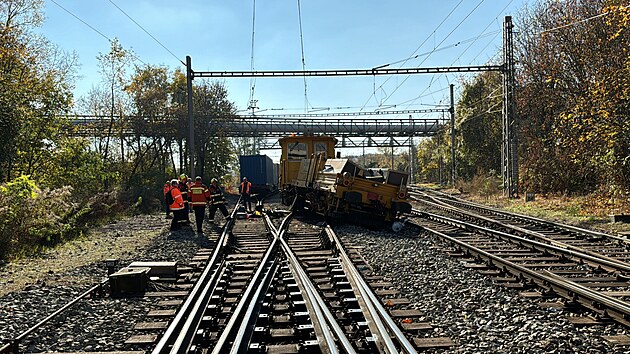 Železničářská podbíječka se v Praze srazila s nákladním vlakem. (1.11.2024)