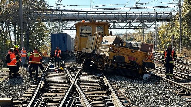 Železničářská podbíječka se v Praze srazila s nákladním vlakem. (1.11.2024)