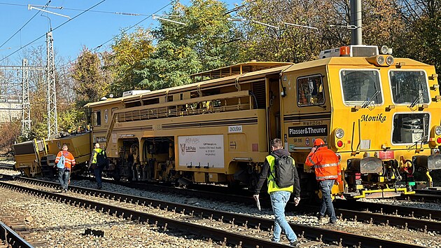 Železničářská podbíječka se v Praze srazila s nákladním vlakem. (1.11.2024)