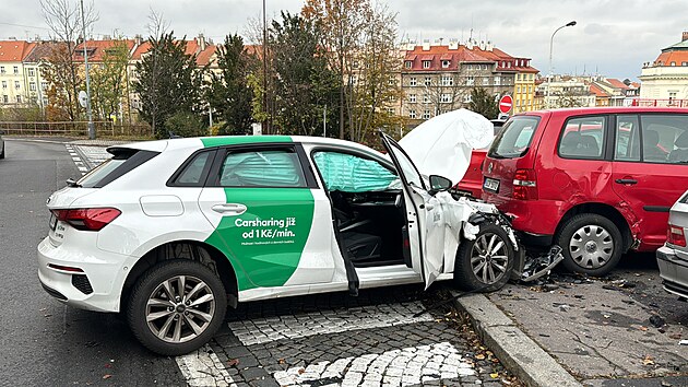 Řidič sdíleného automobilu naboural na pražském Strahově dalších osm aut, z místa nehody utekl. (14. listopadu 2024)