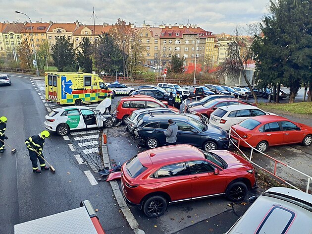Řidič sdíleného automobilu naboural na pražském Strahově dalších osm aut, z místa nehody utekl. (14. listopadu 2024)