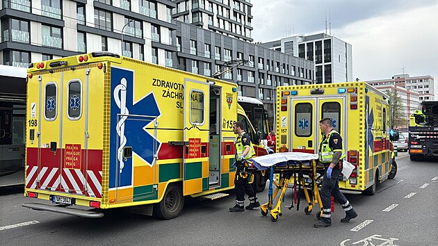 Nehoda osobního auta a tramvaje v Olšanské ulici v Praze. (13. dubna 2025)
