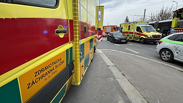 Nehoda osobního auta a tramvaje v Olšanské ulici v Praze. (13. dubna 2025)