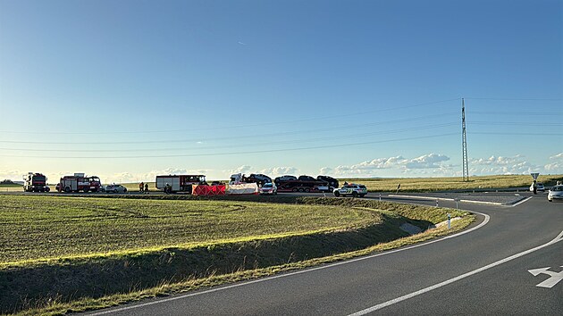 Nehoda osobního a nákladního auta na silnici 16 u obce Žižice u Kladna. (12. září 2025)