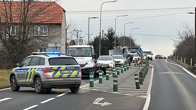 Při nehodě policejního auta jedoucího k havárii dodávky u Přistoupimi na Kolínsku se vážně zranil jeden z policistů. Silnice I/12 byla dočasně uzavřená. (27. ledna 2025)