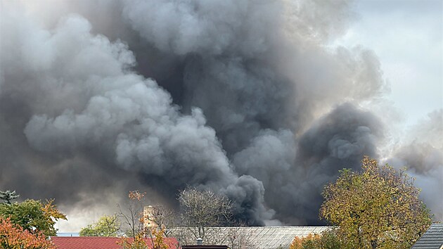 V Nehvizdech hoří průmyslová hala, hasiči vyhlásili třetí stupeň poplachu ( 22. října 2025)