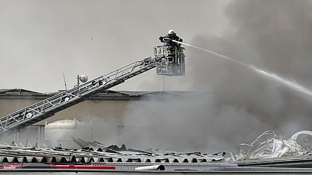 V Nehvizdech hoří průmyslová hala, hasiči vyhlásili třetí stupeň poplachu ( 22. října 2025)