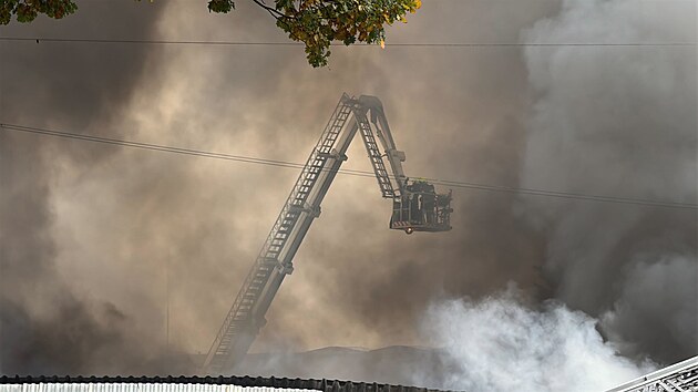 V Nehvizdech hoří průmyslová hala, hasiči vyhlásili třetí stupeň poplachu ( 22. října 2025)