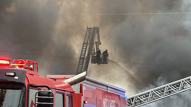 V Nehvizdech hoří průmyslová hala, hasiči vyhlásili třetí stupeň poplachu ( 22. října 2025)