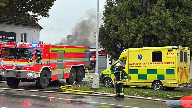 V Nehvizdech hoří průmyslová hala, hasiči vyhlásili třetí stupeň poplachu. (22. října 2025)