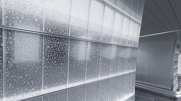 Dopravní podnik nicméně později přišel s požadavkem na změnu návrhu. Namísto skleněných destiček budou ve stanici použité velkoformátové desky na černém podkladu, díky čemuž nebudou skrze sklo vidět případné průsaky.