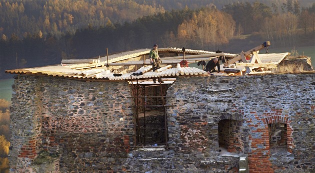 „Nezvolili jsme klasickou sedlovou střechu, jakou na hradě mohli lidé vidět jen v té pohádce, ale rozhodli jsme se pro experimentální přístup. Vybrali jsme zatím tři nejexponovanější místa, věž, prostor nad kaplí a jihozápadní nároží. Zatím je udělána dřevěná konstrukce, na ni přijde fólie, geotextilie, na ni pak plocha zeminy a střecha se zatravní. Bude tedy zelená, nejlépe kdyby na ní od příštího jara kvetlo kvítí,“ vysvětluje Jiří Sobek.