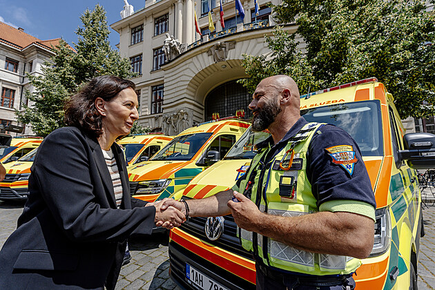 Pražská zdravotnická záchranná služba dostala nové sanitky. Na snímku Alexandra Udženija. (19. června 2025)
