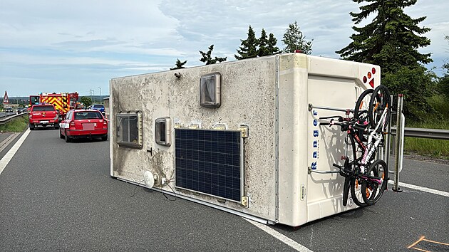 Dálnice D4 u Všenor stojí, starostovi Řeporyjí se převrhl obytný přívěs. (1. června 2025)