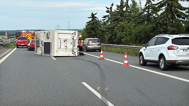 Dálnice D4 u Všenor stojí, starostovi Řeporyjí se převrhl obytný přívěs. (1. června 2025)