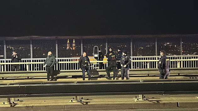 Policie zasahuje na Nuselském mostě poté, co z něho skočil člověk. (29. listopad 2024)