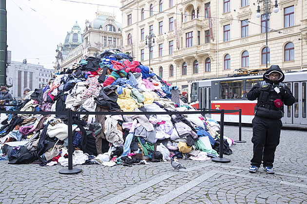 V rámci konference Cirkulární města & byznys 3 byla na náměstí Republiky instalovaná hromada oblečení. (12. listopadu 2024))