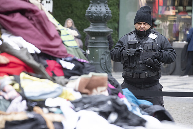 V rámci konference Cirkulární města & byznys 3 byla na náměstí Republiky instalovaná hromada oblečení. (12. listopadu 2024)