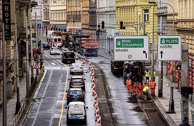 Rekonstrukce vozovky v ulici Plzeňská. (16. července 2025)