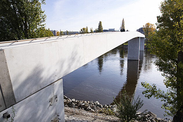 Štvanická lávka po odstranění ocelové konstrukce sloužící pro zvednutí mostu (18. října 2024)