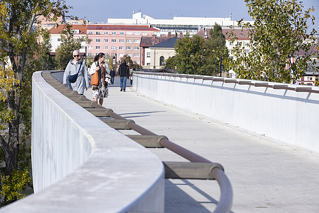 Štvanická lávka po odstranění ocelové konstrukce sloužící pro zvednutí mostu (18. října 2024)